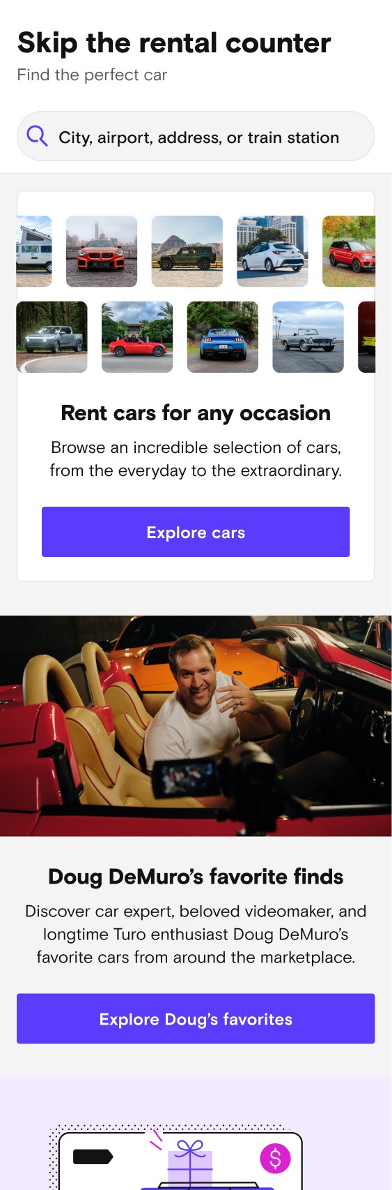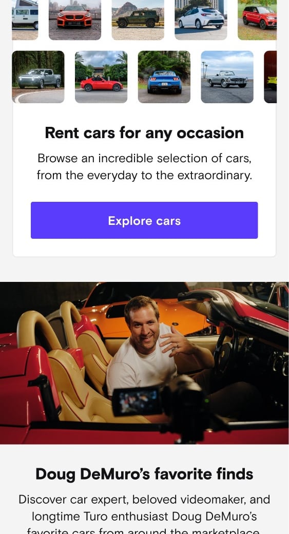 Testing extra search entry point + Doug DeMuro partnership feature