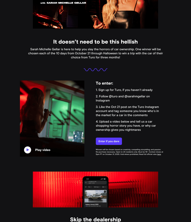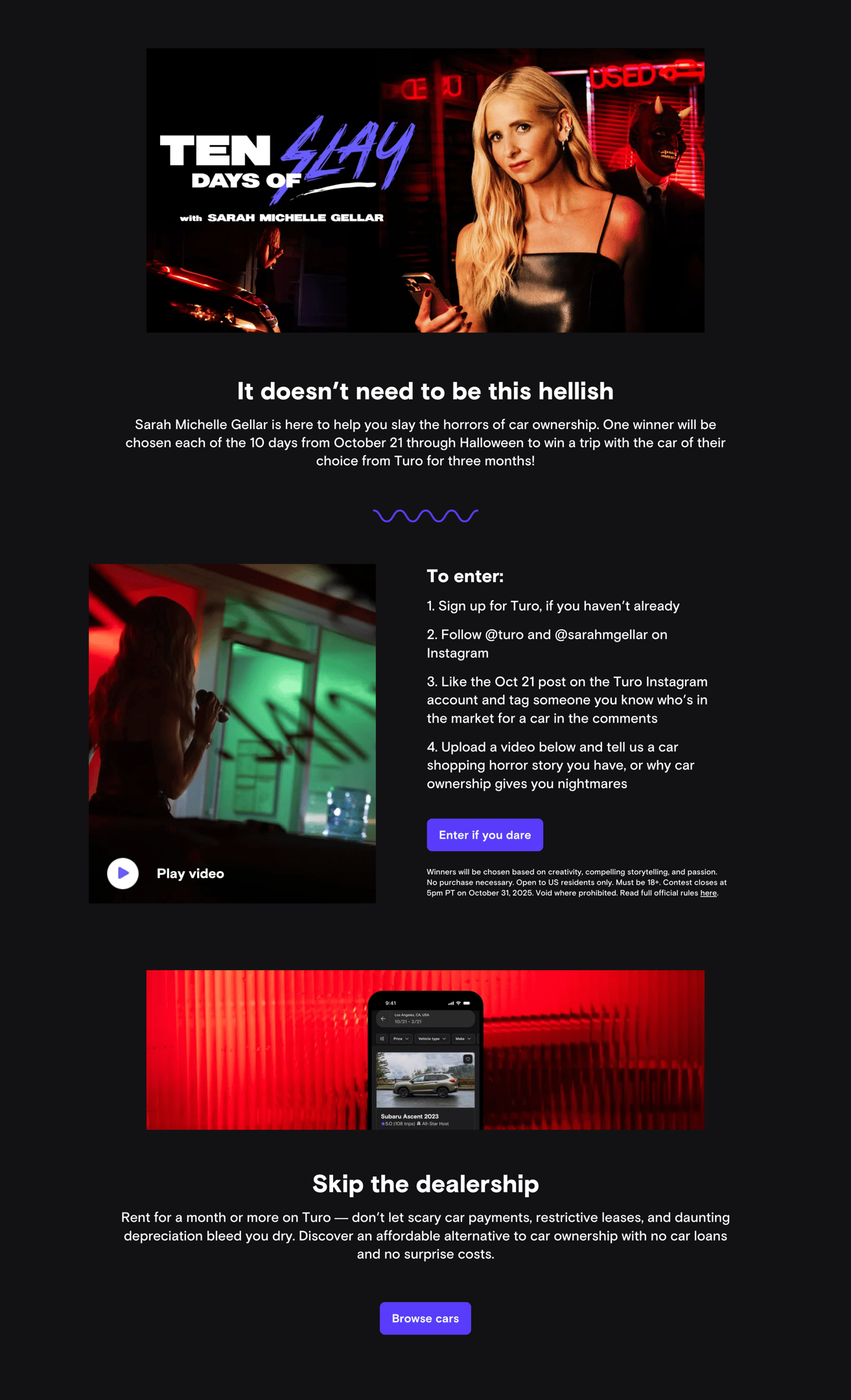With Sarah Michelle Gellar's help, this video and contest-centered partnership introduced the new "monthly rentals" feature to guests.
